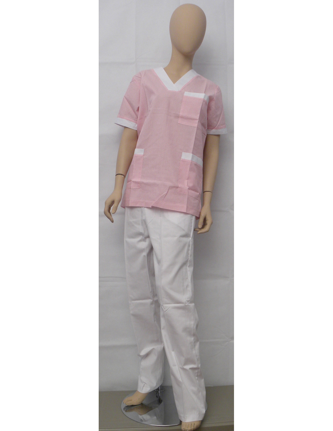 Conjunto de casaca cuello pico, 3 bolsillos. Pantalón con 2 bolsillos y cintura de goma. Hecho en España.